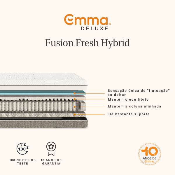 O Colchão Emma Fusion Fresh Hybrid é um colchão com fluxo de ar ideal para uma elevada respirabilidade e zoneamento contínuo “infinito”, adapta-se aos movimentos do teu corpo e isola-os.