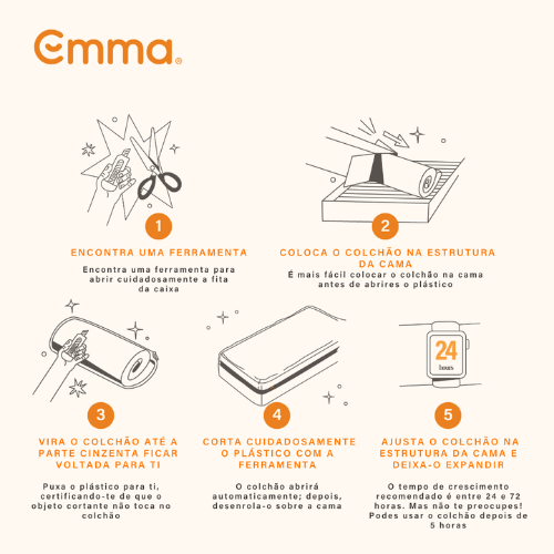 Com garantia da marca Emma, pode experimentar este colchão durante 100 noites e se não se adaptar devolvemos o seu dinheiro e organizamos a recolha do colchão.
