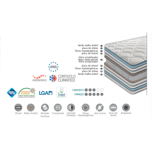 Formado por molas bicónicas de alta capacidade de absorção e distribuição de peso, proporciona maior conforto e durabilidade. Permite um elevado grau de transpirabilidade interna para que os seus músculos se relaxem numa posição mais natural. As molas ajustam-se instantaneamente aos movimentos do seu sono, apoiando o seu corpo enquanto dorme.