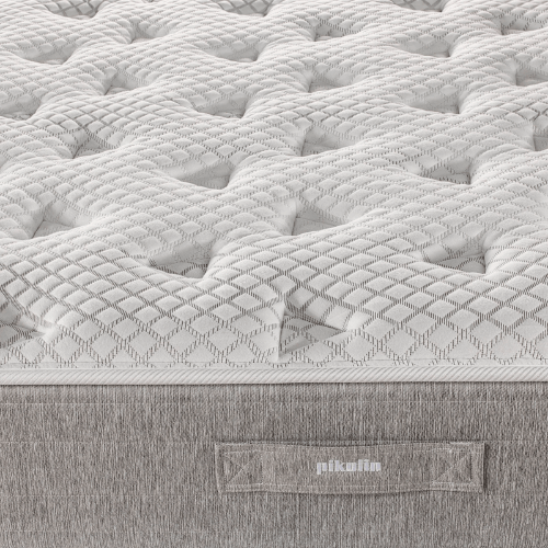 Colchão de mola ensacada, 30cm de altura, com acolchoado de espuma. Combinando suporte, suavidade e frescura, o Colchão Pikolin Sleep é ideal para casais que valorizam um descanso reparador num ambiente fresco e livre de interrupções.