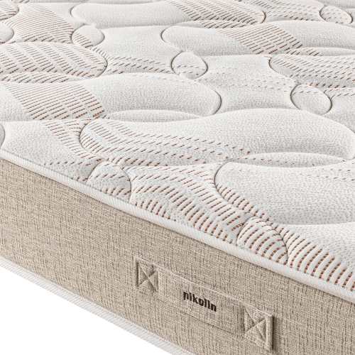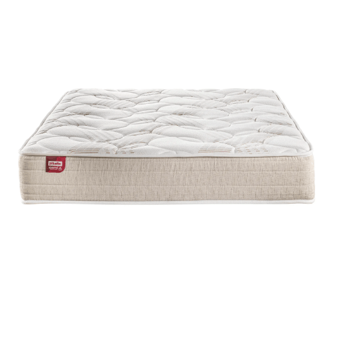 O conforto é reforçado pelo acolchoamento com tecnologia Fibercel, que combina fibra atérmica — responsável por facilitar a circulação do ar e regular a temperatura — com uma camada de poliéter HR que proporciona uma receção mais suave e confortável ao deitar.
